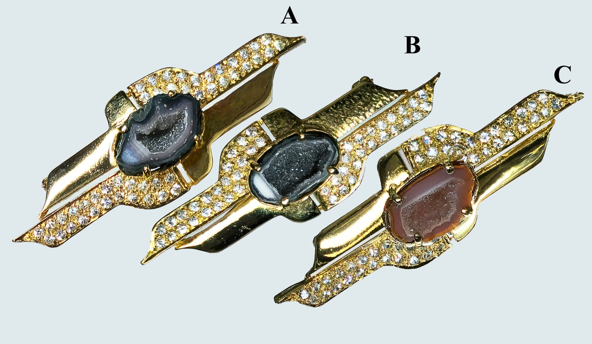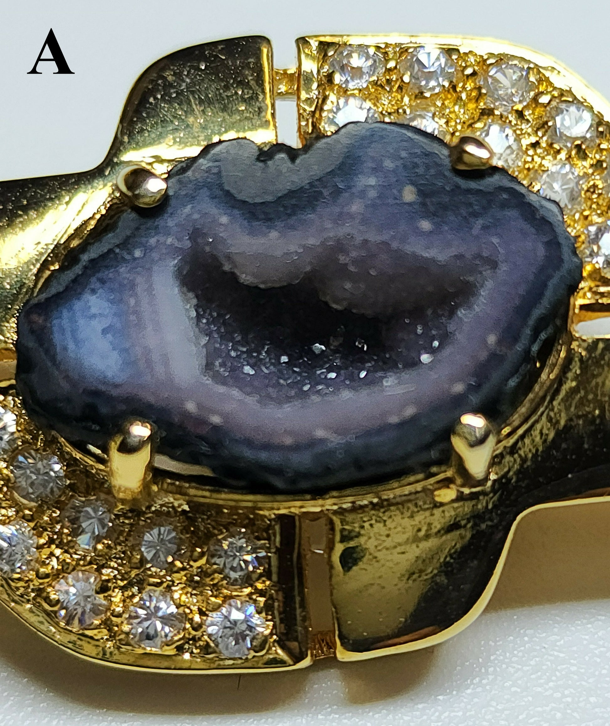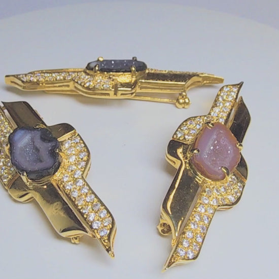 03600. Druzy Agate and CZ in Gold Plated Sterling Silver Brooch