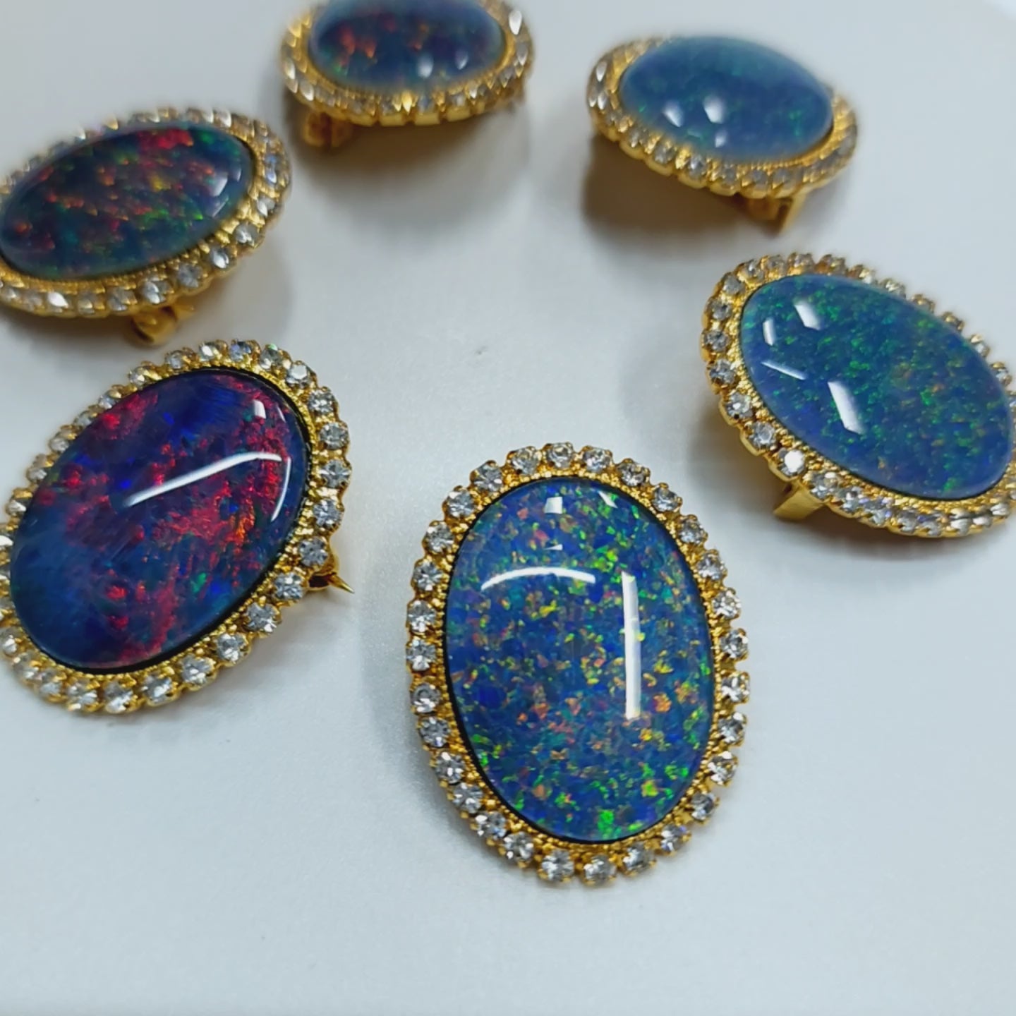 53662. Gold plated Brooch, with Swarovski Rhinestones, Large Size 25 x 18 mm Oval Cut Australian Opal Triplet